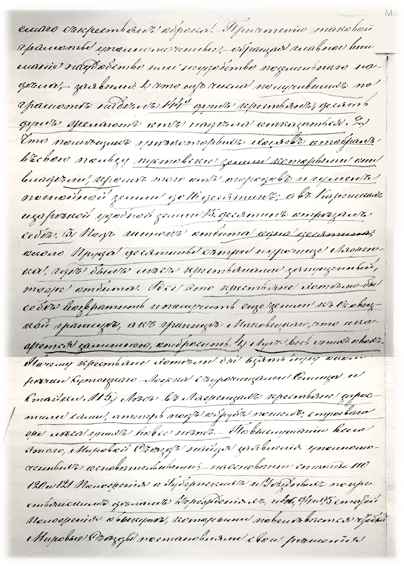 Попробуем разобраться почему же давыдовичские крестьяне отказывались подписывать Выкупные акты. Менялись Мировые Посредники, несколько раз собирался Мировой Съезд. Протоколы и акты обновлялись, причем заковыристый почерк и витиеватая форма изложения сути делают эту попытку разобраться весьма затруднительной.