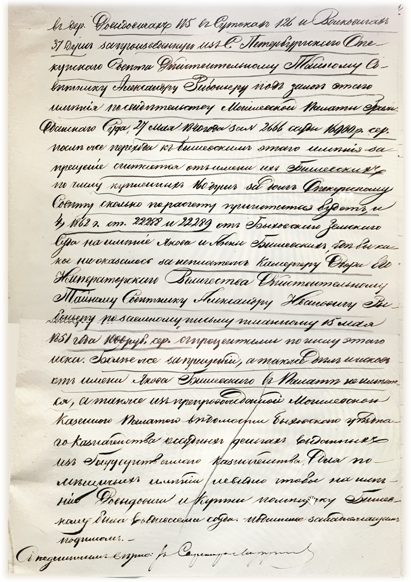 От владельца имения, как явствует из дела, Могилевское губернское по крестьянским делам присутствие затребовало, как полагалось по законам и правилам, сведения о том, при каких обстоятельствах он стал хозяином выкупаемых земель. (Тем самым проверялись его права на них.) Кроме того, чиновники навели справки на предмет того, не состоит ли поместье в залоге.